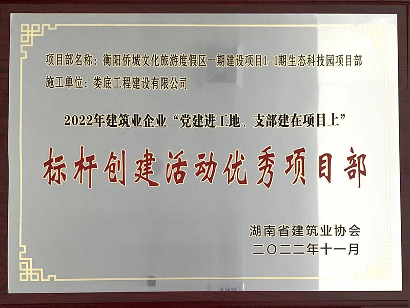 2022年衡陽僑城文化旅游度假區一期生態科技園項目標桿創建活動優秀項目部獎牌